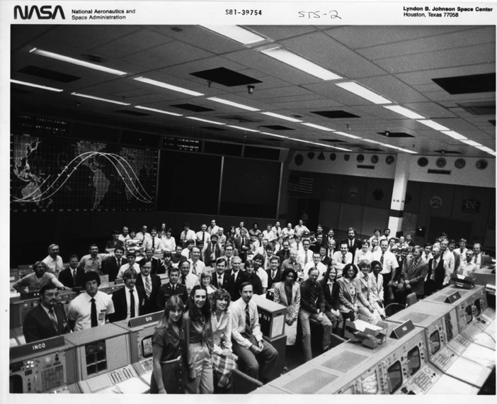 Some positions were listed on the staffing charts as being in the MOCR, but were later moved to a support room or folded into some other position. Any position listed as being a MOCR position was "counted" (such as Aero and Command) as long as it was on the published staffing chart. For women who worked the same flight, the Ascent Team members are listed ahead of the other teams, and otherwise, in alphabetical order by last name. Most women worked multiple flights, but are only listed for their first appearance in the front room.